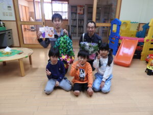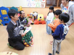 こちらは、いつも芋ほりでお世話になっているJRの方々です。園に訪問して頂きました🚅