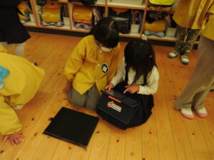 ランドセルを背負ってみたり、