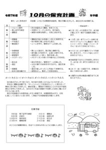 10月の保育計画と給食だよりです。